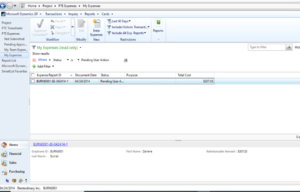 Microsoft GP has added a “My Expenses” list under Project Time and Expense. When you click on My Expenses, all the expenses that have been logged by the current user will appear. Additionally, any expenses that have entered on their behalf will also be displayed.