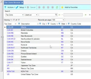 Step 1: Created Tax Zones to represent each Canadian province, which are assigned to Customers