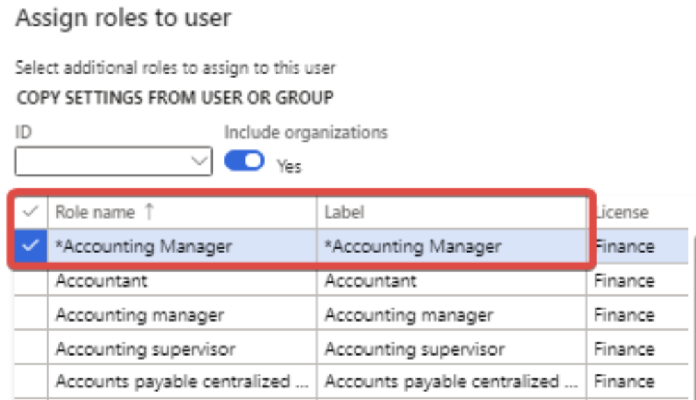 Next, on the right side of the screen, select the role you want to add and click OK. If this is a new user and you want to add the same roles as another user, type the users name whose permissions you want to copy in the ID field. From here, you will be able to select some or all the permissions from that user that you want to add.
