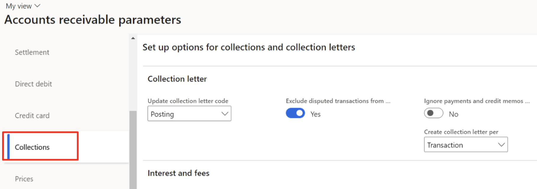 - Go to Navigation pane > Modules > Credit and collections > Setup > Accounts receivable parameters.
