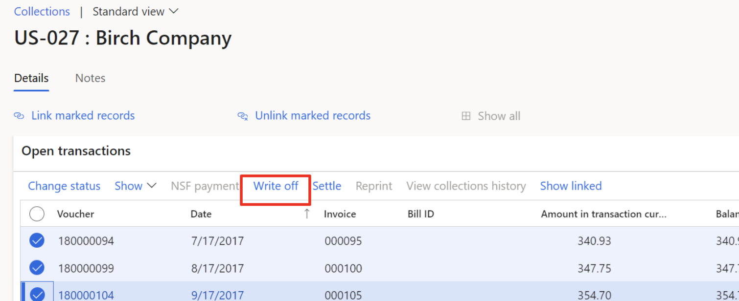 As undesirable as it may be, it is common for a company to have a need to write off a bad account receivable after the specific account is found to be uncollectible from a customer. Why do businesses decide to write off bad debt? Writing off bad debt serves the purpose of improving the company’s accuracy in accounting; it does not remove the customer’s obligation to pay. It brings visibility to the bad customer debts a company may currently have. The decision to write off a bad debt may also be taken when it becomes clear for whatever reason that the customer is not going to pay, such as when the customer goes out of business, comes under serious legal attack from other creditors, or simply challenges the legitimacy of the obligation. An entry to write off the bad debt will consist of two steps: 1) a credit to Accounts Receivable in order to remove the amount that will not be collected, and 2) a debit to Bad Debts Expense to report the amount of the loss on the company’s income statement. Dynamics 365 makes this process incredibly easy for the accounts receivable department and the staff accountants involved in writing off this process. In Dynamics 365, writing off bad debt is as simple as finding the customer and amount, or invoice that needs to be written off, pressing a write-off button, and then posting a system-generated journal entry. This task guide will show you how to set up the parameters for write-offs and then write off transactions from the Collections page, the Open customer invoices page, and the Customer page.