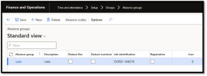 When a worker clocks into the PFE terminal after their designated clock-in time specified in their Standard Time Profile, D365 can automatically prompt them to select an absence code. This can help supervisors quickly understand the reason for their late clock-in directly at the source. Absence Codes can be configured as part of the worker’s Absence Group and can be marked so that they are included in the Absence Report.