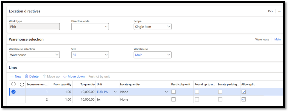 • Location strategies (FIFO, LIFO, Round Up, Etc.).