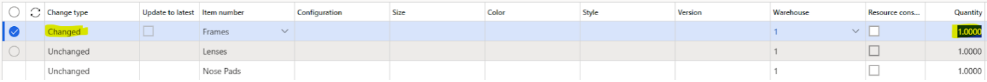 - Select “Lines”: This opens a form where you can make the necessary changes to the BOM, which will mark the modified line with a “Changed” status.