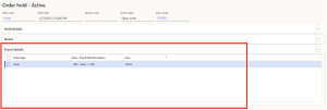 When an order is placed on hold, the total fraud score, the specific rules that contributed to the score, and the hold code applied can be seen by navigating to the sales order in question and clicking on the Order holds button under the Functions submenu in the Sales order tab on the top ribbon, then expanding the Fraud Details fast tab on the Order holds screen.