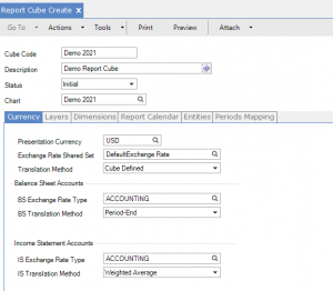 b. Choose the presentation currency for the cube.