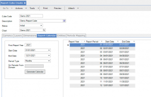 Step 4: Specify first report year, start/end dates, and period types in the Report Calendar tab