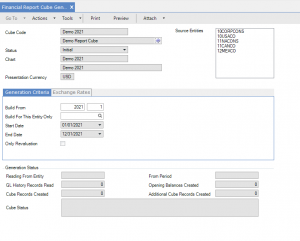 Step 7: Use Financial Report Cube Generate to generate data to the reporting tables
